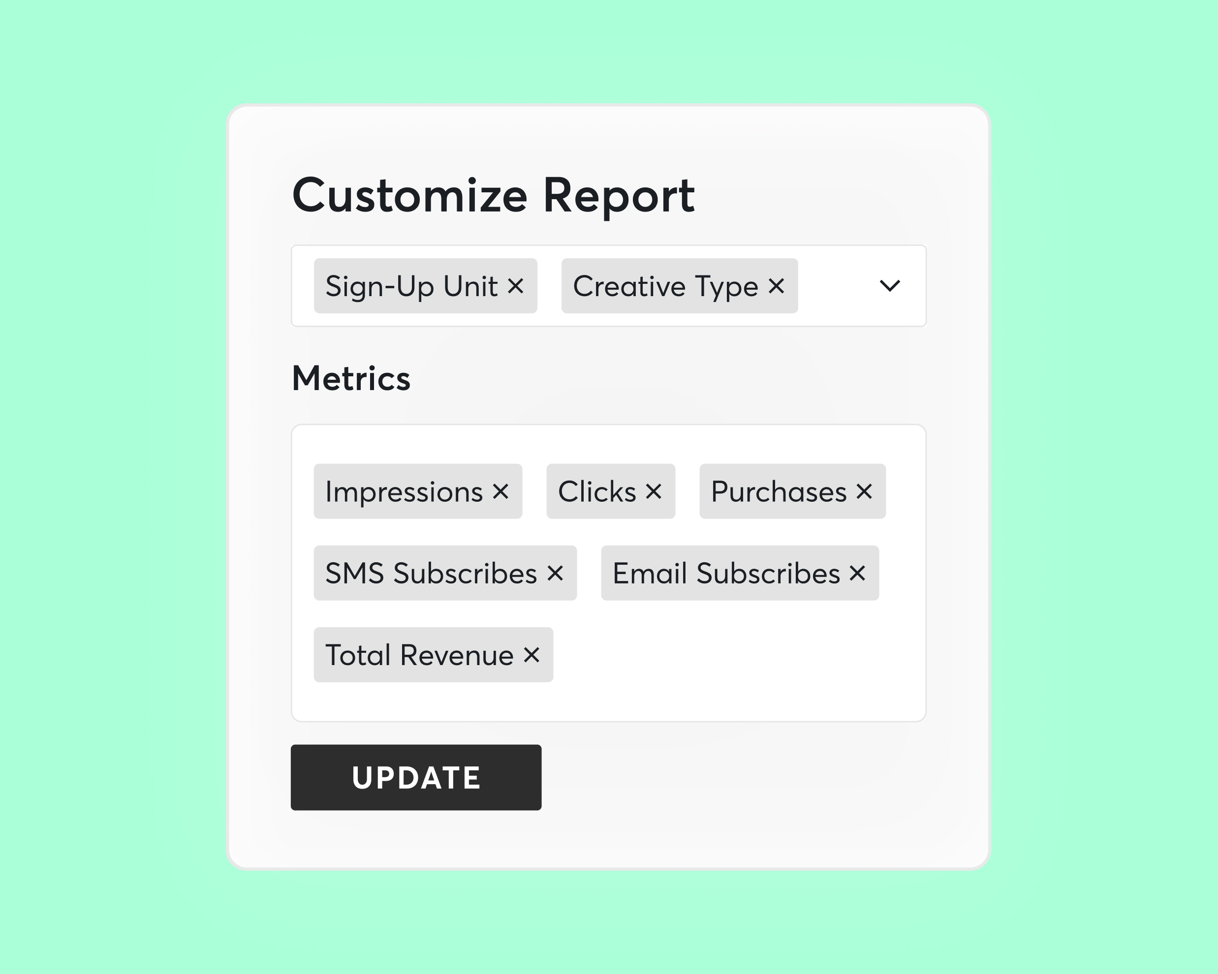 Capture subscriber sign-ups across web, social, and in-store with 30+ compliant list growth tools, including Attentive’s patented two-tap mobile opt-in technology. Collect zero-party data during sign-up and enrich client profiles with first-party data using the Attentive Tag.