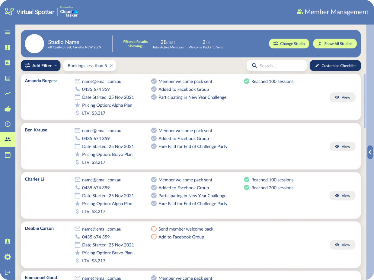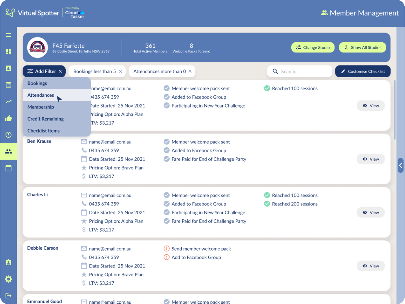 The platform simplifies member management by keeping all your member data in one central system. You can easily see activity history, engagement levels and personal details, which helps you understand your clients better and tailor communication to improve their experience.