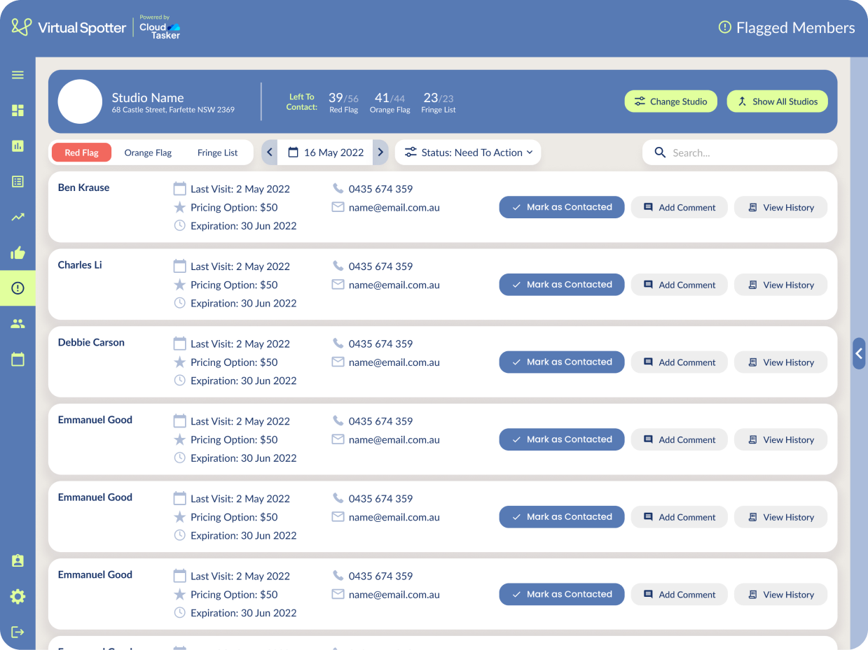 CloudTasker helps you improve retention by identifying members who are disengaging. It automatically highlights patterns of inactivity and gives you tools to re-engage those members before they cancel, reducing churn and increasing lifetime value.