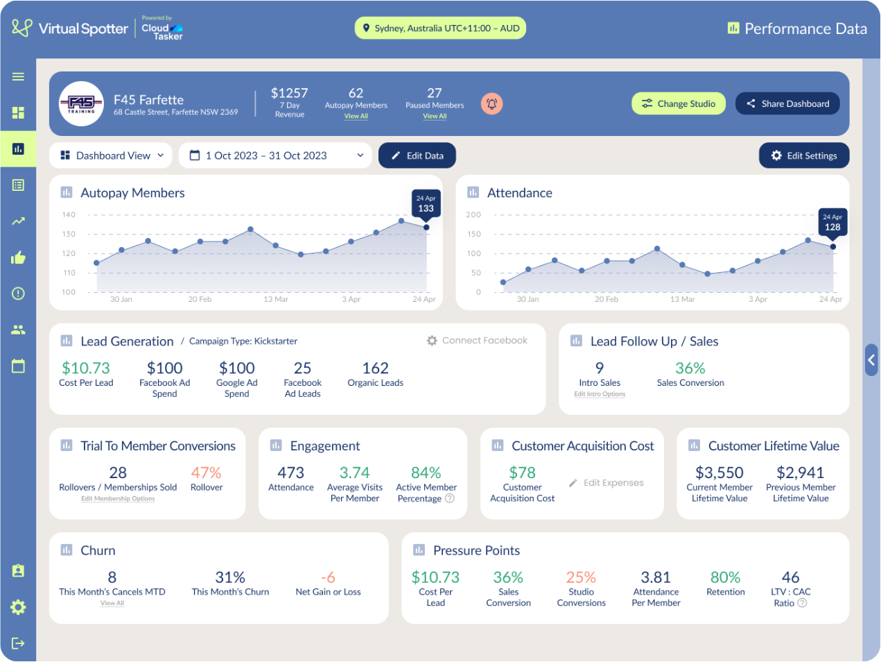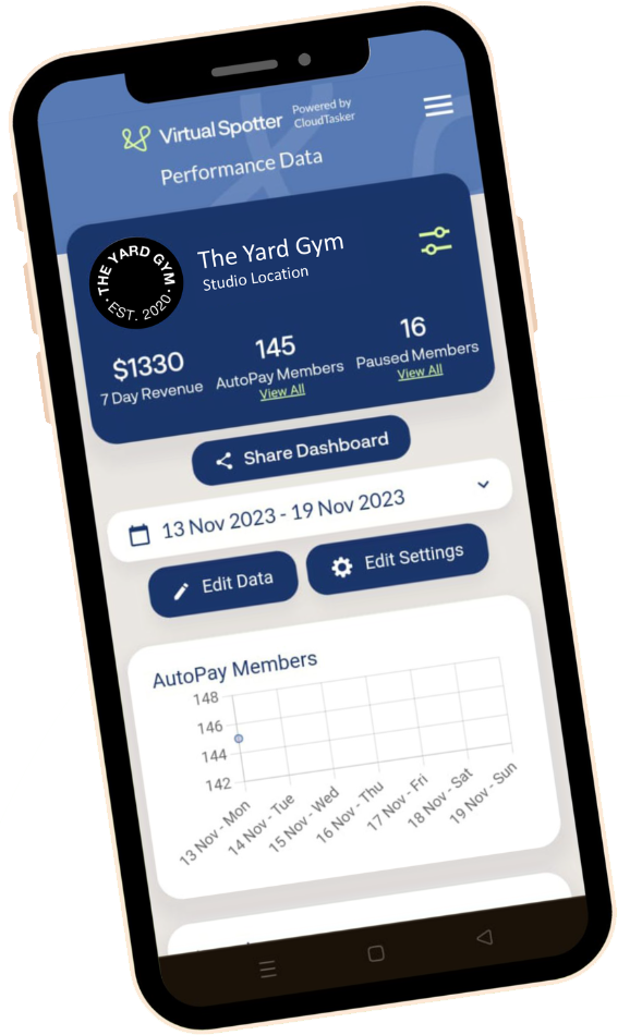 CloudTasker provides a real-time performance dashboard that gives you visibility into your key business metrics. You can track attendance, retention, revenue and engagement trends in one place, making it easier to identify opportunities and address issues before they become bigger problems.