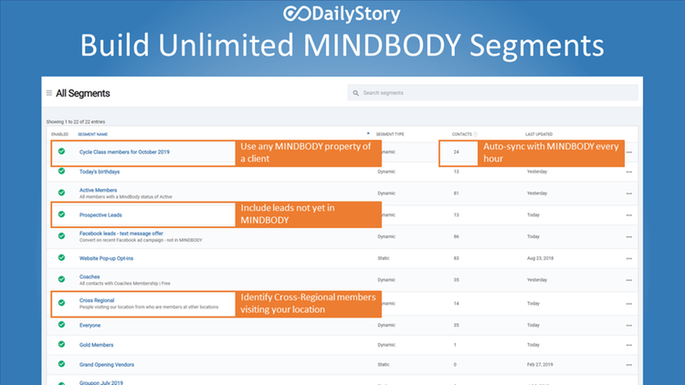 DailyStory enables you to run marketing as efficiently as Mindbody allows you to run your gym or studio.