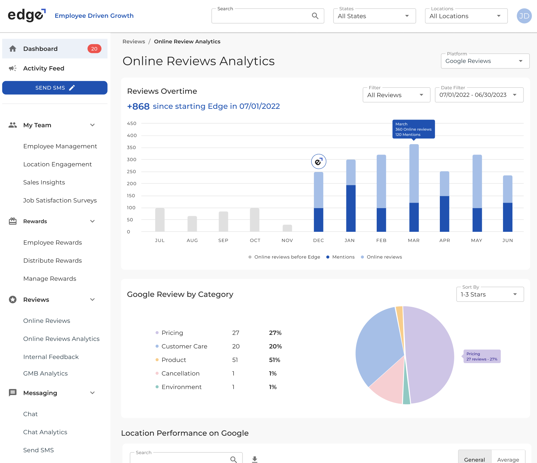 Each plan offers you automated Google reviews generation and responses. You also get Edge revenue share, our solution to support employee rewards for your service-based business in US & Canada.