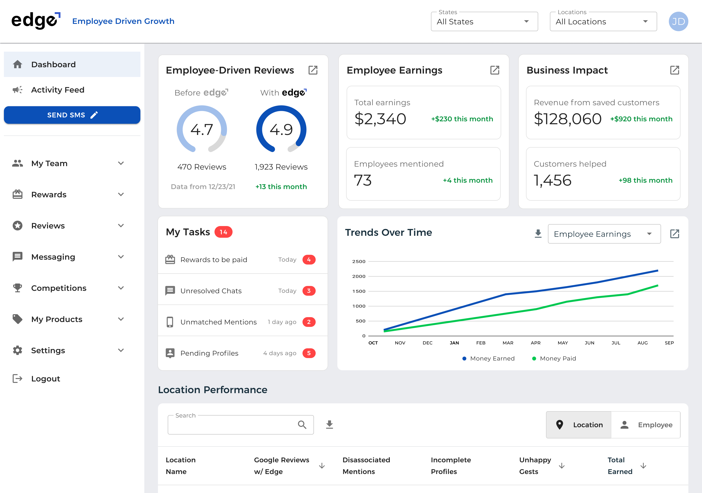 Edge is the leading employee-driven growth platform, unlocks employees as a growth channel for franchise and service brands like European Wax Center, Massage Envy, Gold’s Gym, Driven Brands, Xponential Fitness & more. The Edge (Employee-Driven Growth Engine) platform boosts employee engagement and motivation with growth-based rewards & recognition that drive business growth.