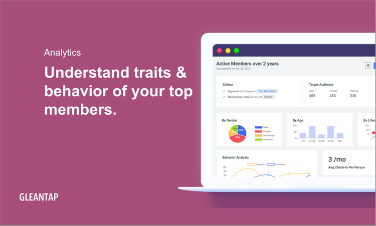 Setup real-time ongoing campaigns based on customer journey or behavior. For instance, you can set a rule to auto email/text any member that doesn't book a pilates class in over 30 days.
