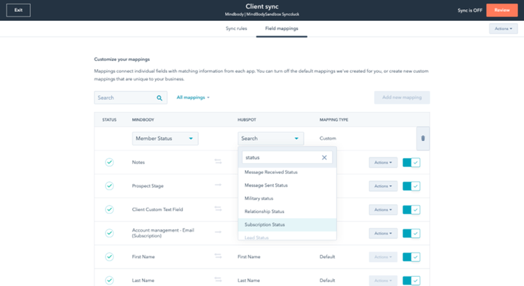 Sync data between Mindbody and HubSpot real-time without manual data entry or messy, time-consuming imports. Set-up is quick with out-of-the-box field mappings already created for you.