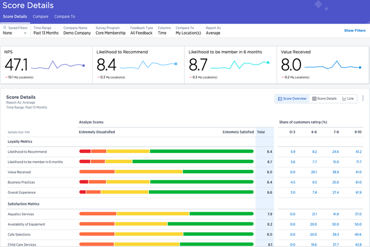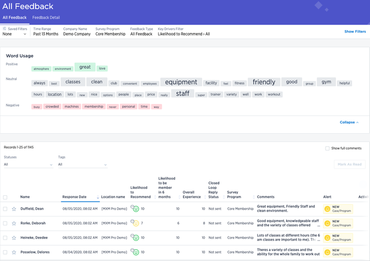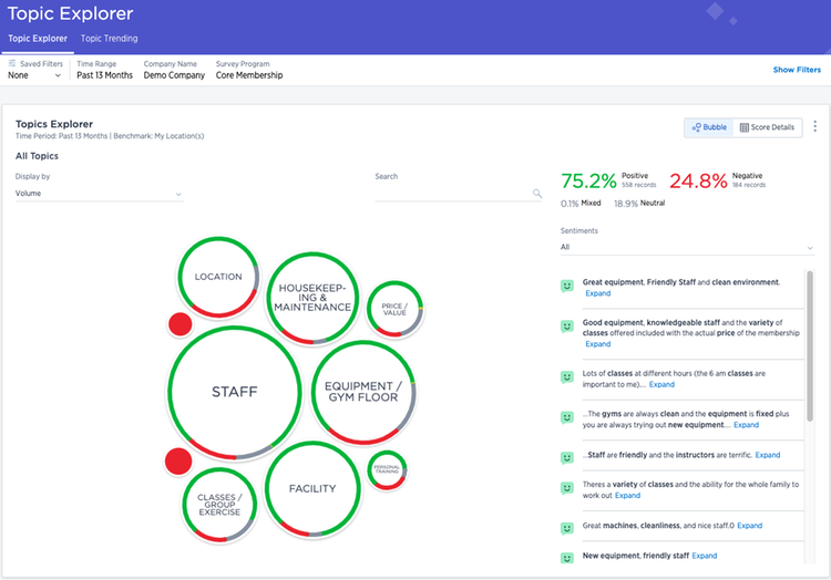 Reports to indicate where you are strongest and where you need to improve - all of the power of Medallia, the world's best experience management system, configured specifically for the fitness industry. Let the power of AI monitor member comments, exposing common themes and sentiment to surface the latest trends in your business.