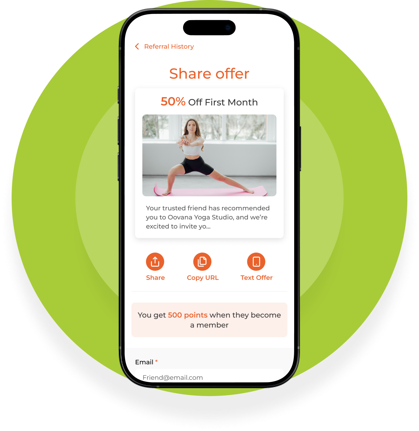 Drive referrals by rewarding clients when their friends attend a class, make a purchase, or buy a membership.