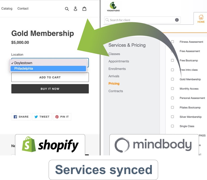 • Mindbody pricing options sync as non-inventory services in Shopify. Services offered in more than one location will have the location as an option for your customers to choose where they would like the service rendered.