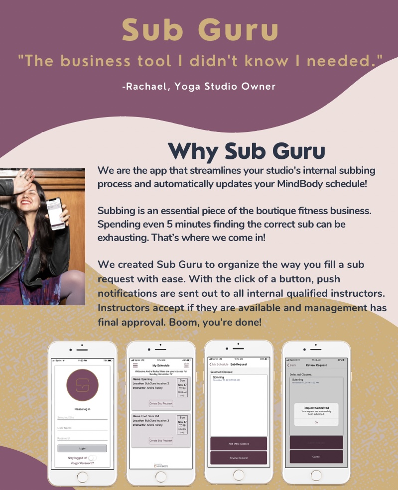 Whether you are an Owner or Manager of a Fitness Club or Boutique Studio, you’re busy managing your abundance! We don’t want you to worry about the substitution process, and you don’t have to. Sub Guru. Streamline, Integrate and Automate your instructor substitution process with our user-friendly software. A simple, easy and efficient management tool fit for every studio. Spend less time re-staffing and more time making your studios amazing.