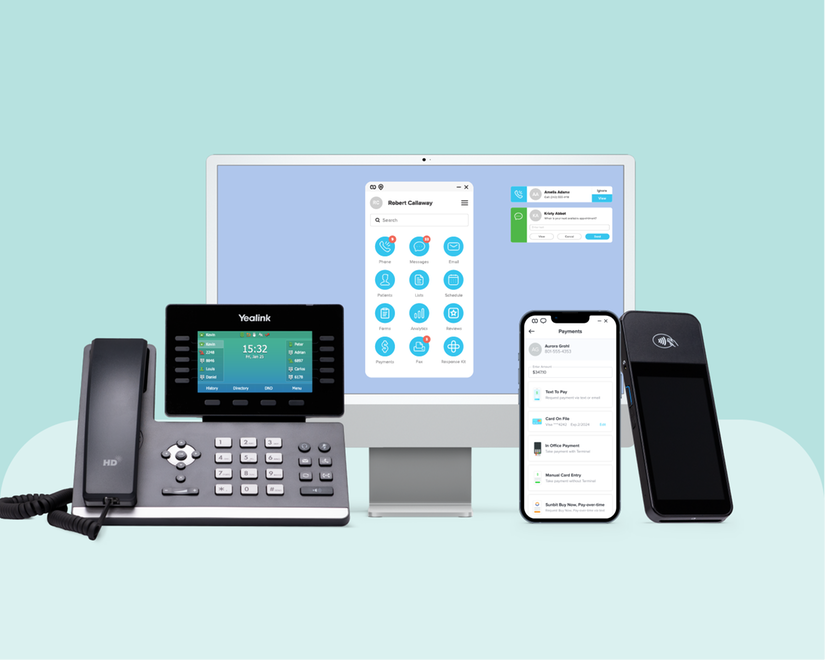 Phones, scheduling, reminders, texting and payments.